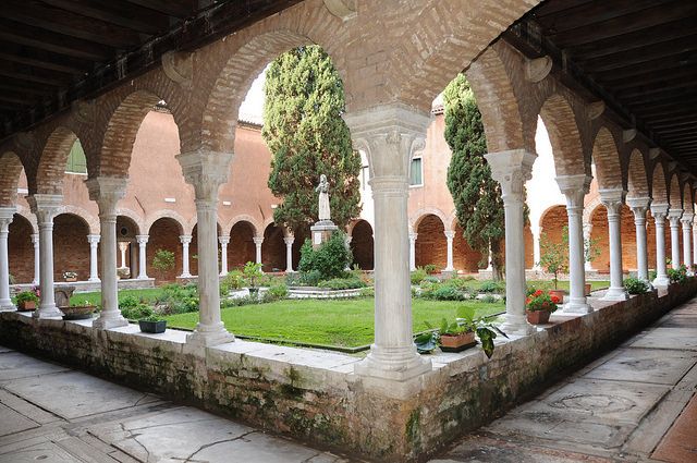 The cloisters in the convent that forms part of the church complex are so beautifully photographable and must be seen! They are some of the oldest still standing in the whole of the lagoon. The church has 5 chapels, each containing works of art by famous Italian painters – 3 works by Paolo Veronese, a Giovanni Bellini, the lone work of Fra Antonio da Negroponte, and the remains of a Tintoretto stolen and whisked off to Scotland in 1648.